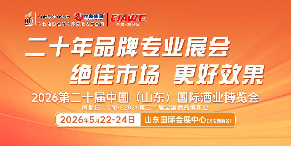 2026年5月22日至24日,CNFE2026第二十届全国食品博览会暨山东酒博会将在山东国际会展中心隆重举行。作为中国酒食行业历史最悠久的B2B展会之一,全国食品博览会暨山东酒博会已连续成功举办十九届,今年即将迎来二十周年的重要里程碑。众所周知,山东省作为经济大省,酒类、食品、饮料消费发达,在此举办的酒类、食品、饮料类